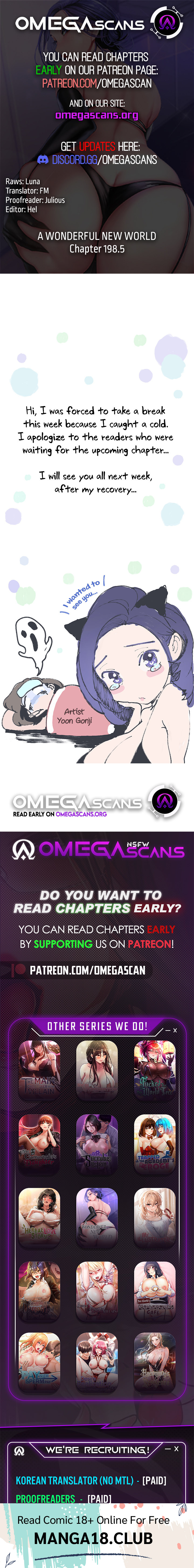 Read the latest manga A WONDERFUL NEW WORLD Chapter 198.5 at manga18fx . A WONDERFUL NEW WORLD is always updated at manga18fx . Dont forget to read the other manga updates. A list of manga collections manga18fx is in the Manga List menu.
