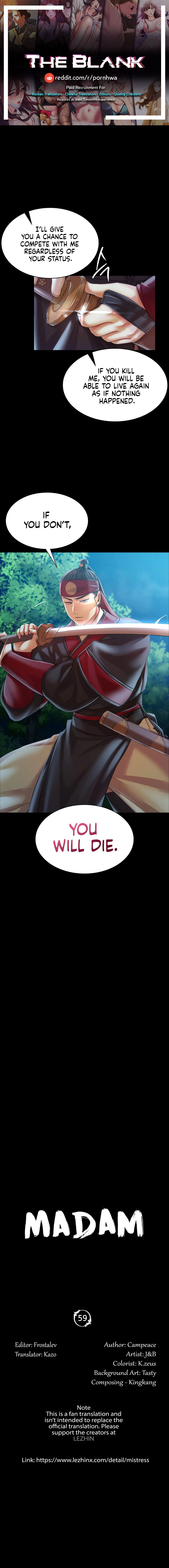 Read the latest manga Madam Chapter 59 at manga18fx . Madam is always updated at manga18fx . Dont forget to read the other manga updates. A list of manga collections manga18fx is in the Manga List menu.
