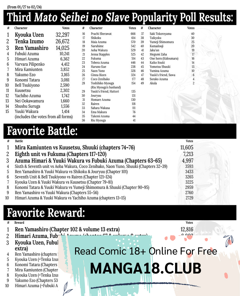 Read the latest manga Mato Seihei no Slave Chapter 129 at manga18fx . Mato Seihei no Slave is always updated at manga18fx . Dont forget to read the other manga updates. A list of manga collections manga18fx is in the Manga List menu.