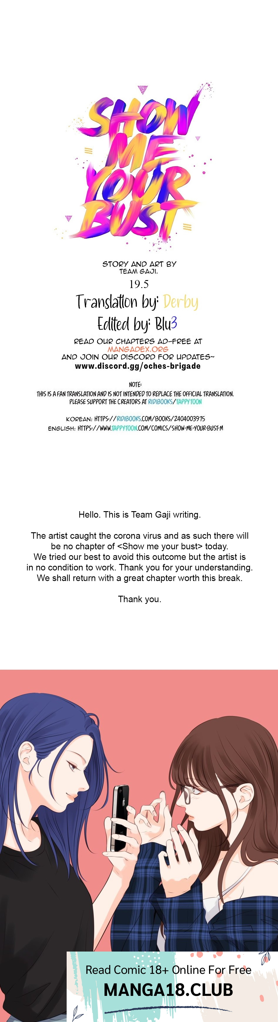 Read the latest manga Show Me Your Bust Chapter 19.5 at manga18fx . Show Me Your Bust is always updated at manga18fx . Dont forget to read the other manga updates. A list of manga collections manga18fx is in the Manga List menu.