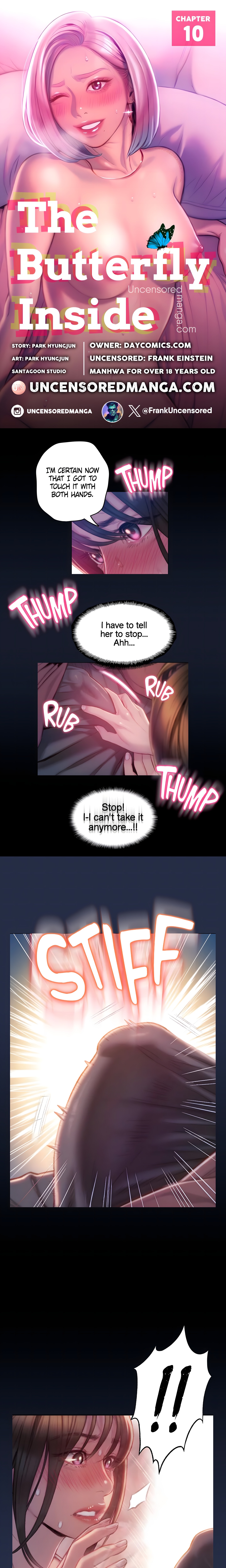 Read the latest manga The Butterfly Inside (Uncensored) Chapter 10 at manga18fx . The Butterfly Inside (Uncensored) is always updated at manga18fx . Dont forget to read the other manga updates. A list of manga collections manga18fx is in the Manga List menu.